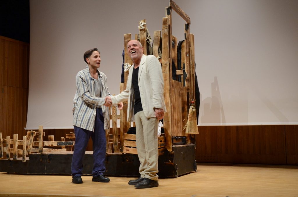 A kérdésekre válaszolva a szereplők elmondták, hogy nem volt egy szokványos próbafolyamat az övék. Az első előadásokon még nem András játszotta Placid atyát, mert neki más kötelezettsége volt. Otthon, az asztal mellett tanulta meg a szöveget és 4-5 próba után már fel is léptek. Most nagyjából a tizedik közös előadás után érzi azt András, hogy igazán egymásra hangolódtak színésztársával. „Már nem csak a szöveget pörgetem, hanem valóban oda tudunk figyelni egymásra. Egymásra hagyatkozunk és egymásból építkezünk.”