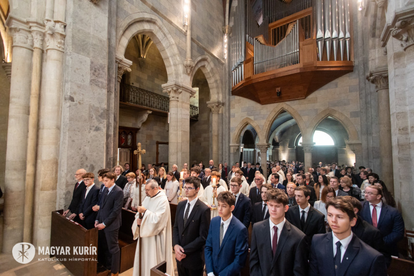 A kérdezz-felelek után a szenegáli apát, a diákok, a gimnázium elöljárói, tanárai, a hazai bencés szerzetesközösségek képviselői és a meghívott hazai és külföldi vendégek együtt ünnepeltek a Szent Márton püspök tiszteletére megtartott szentmisén.