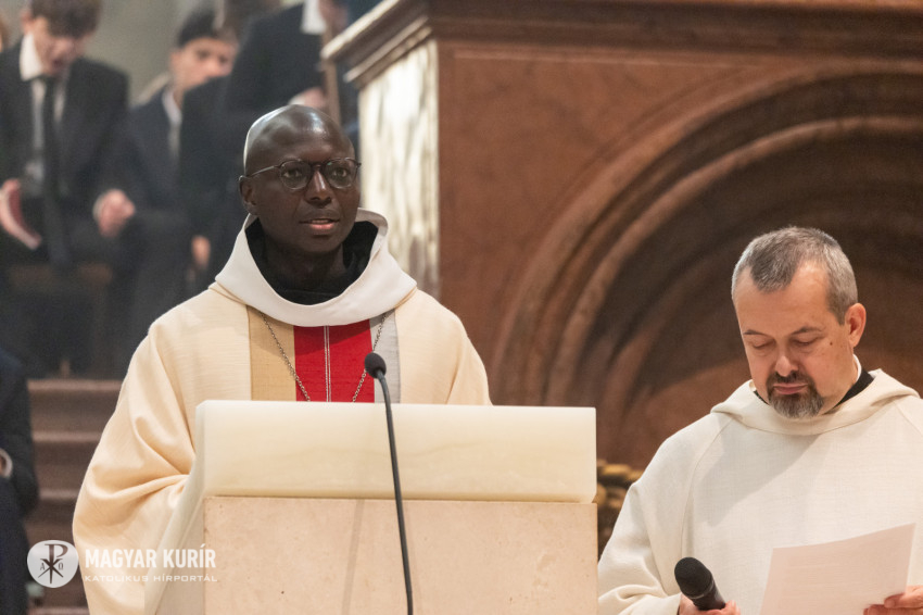 Olivier-Marie Sarr homíliája elején megköszönte a meghívást Hortobágyi T. Cirill főapátnak (aki aznap a Szent Anzelm-templom felszentelésének 125. évfordulója alkalmából Rómában tartózkodott), majd arról beszélt, hogy a keresztényeknek a szentségre való általános meghívottsága három alapvető magatartást feltételez: szeressük minden embertársunkat, különösen azokat, akik nagy megpróbáltatásokon mennek keresztül; hagyjuk, hogy a Szentlélek lehelete működjön bennünk, és gyengéden gondoskodjunk a rászorulókról.